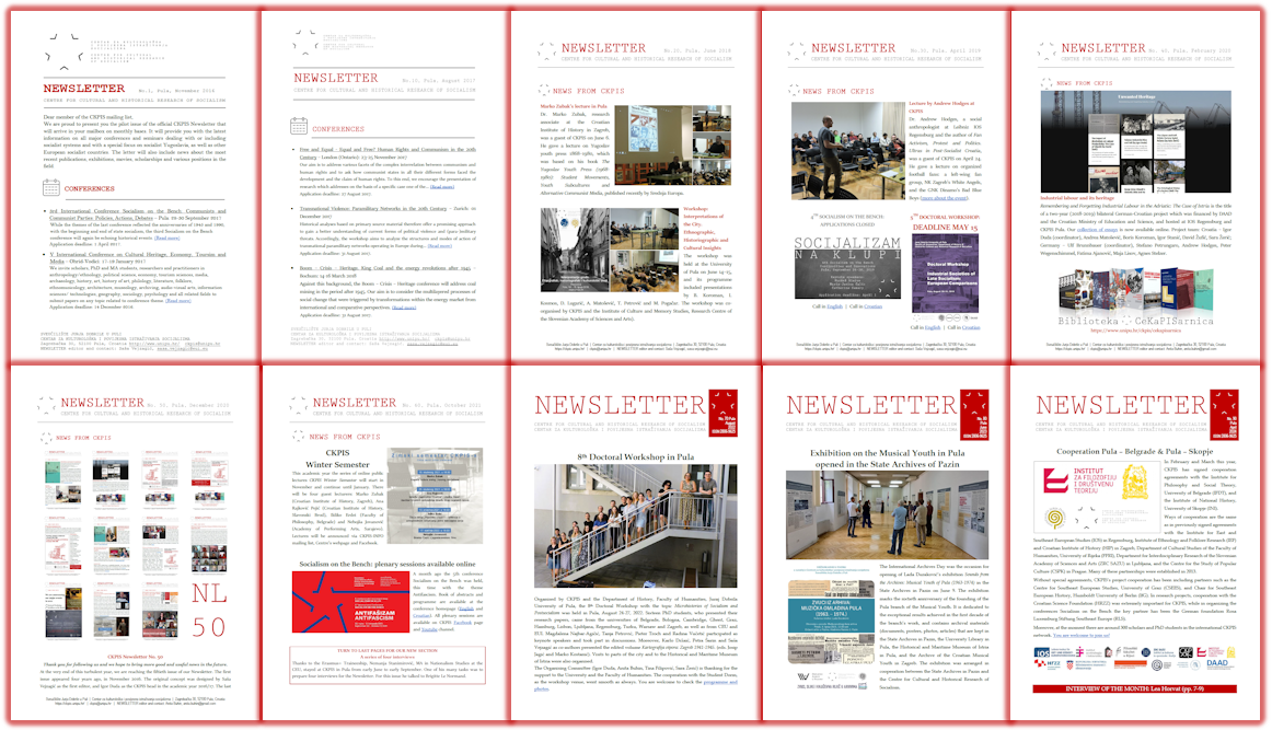 We are proud to present you the CKPIS Newsletter that will arrive in your mailbox on monthly bases if you are subscribed to our mailing list. It will provide you with the latest information on all major conferences and seminars dealing with or including socialist systems and with a special focus on socialist Yugoslavia, as well as other European socialist countries. The letter will also include news about the most recent publications, exhibitions, movies, scholarships and various positions in the field.