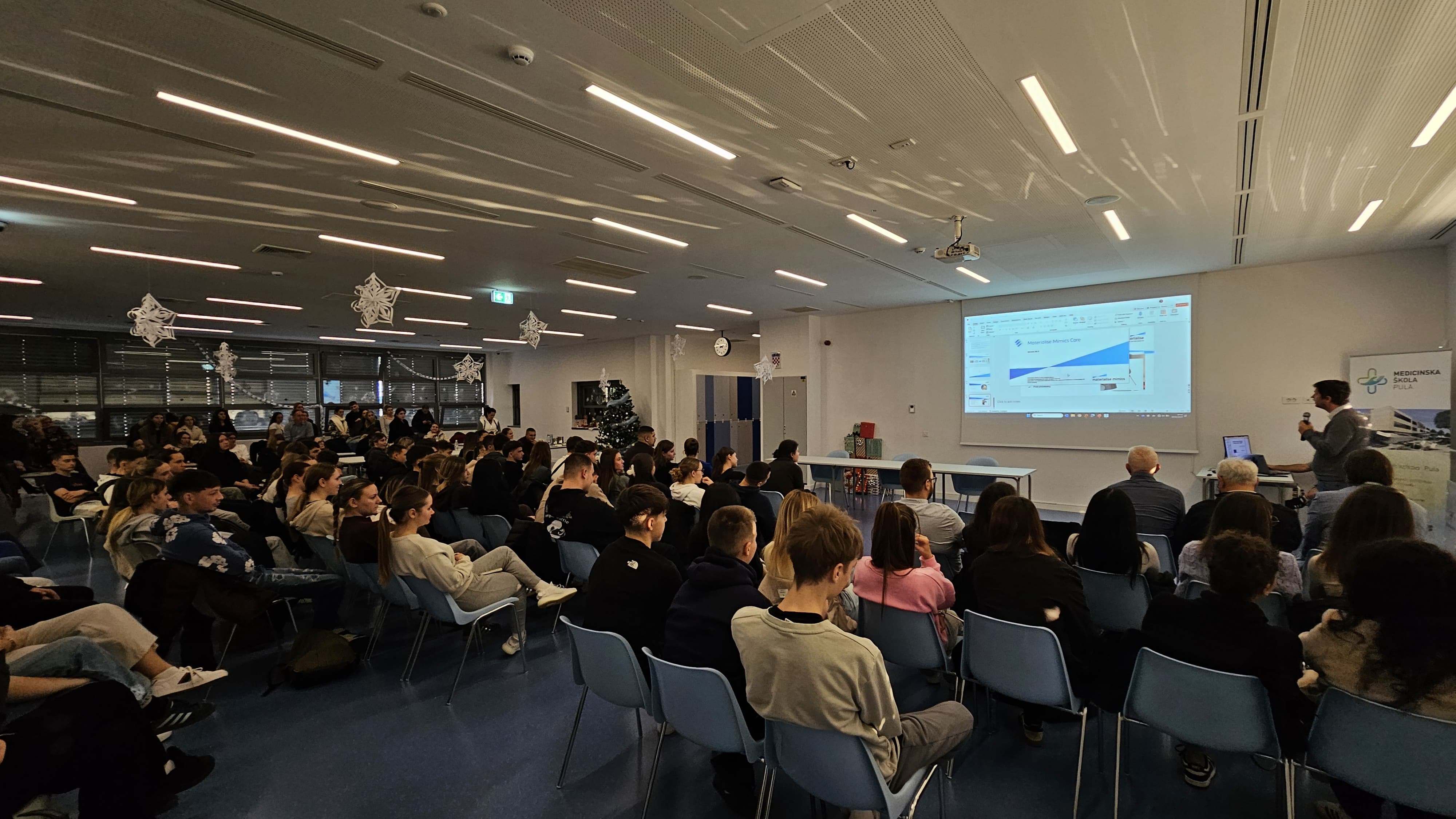 On the second day, dissemination and impact activities were conducted at the Pula Medical School, including a BIOMEDIX workshop for students and a demonstration of the MIMICS software in collaboration with the partner Materialise. Through the workshop, students had the opportunity to observe how a part of the human skull can be fully reconstructed within approximately ten minutes using two software tools. Participants were actively engaged in a question-and-answer session with students, followed by a final working meeting and the conclusion of the remaining project activities.