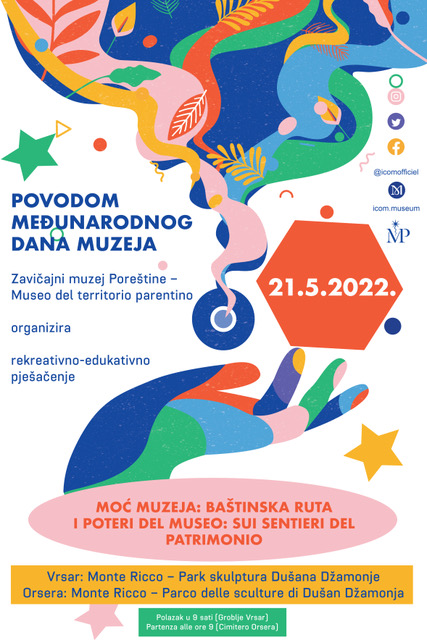 Zavičajni muzej Poreštine će obilježiti Međunarodni dan muzeja u subotu, 21. svibnja, rekreativno-edukativnim pješačenjem od Vrsara preko arheološkog lokaliteta Monte Ricco do Parka skulptura Dušana Džamonje.