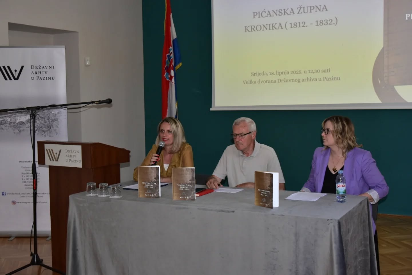 U srijedu, 18. lipnja 2025. u Državnome arhivu u Pazinu predstavljena je knjiga „Pićanska župna kronika (1812.-1832.)“ koju su autorski priredili dr. h. c. mr. sc. Jakov Jelinčić, dr. sc. Elvis Orbanić i izv. prof. dr. sc. Teodora Fonović Cvijanović.