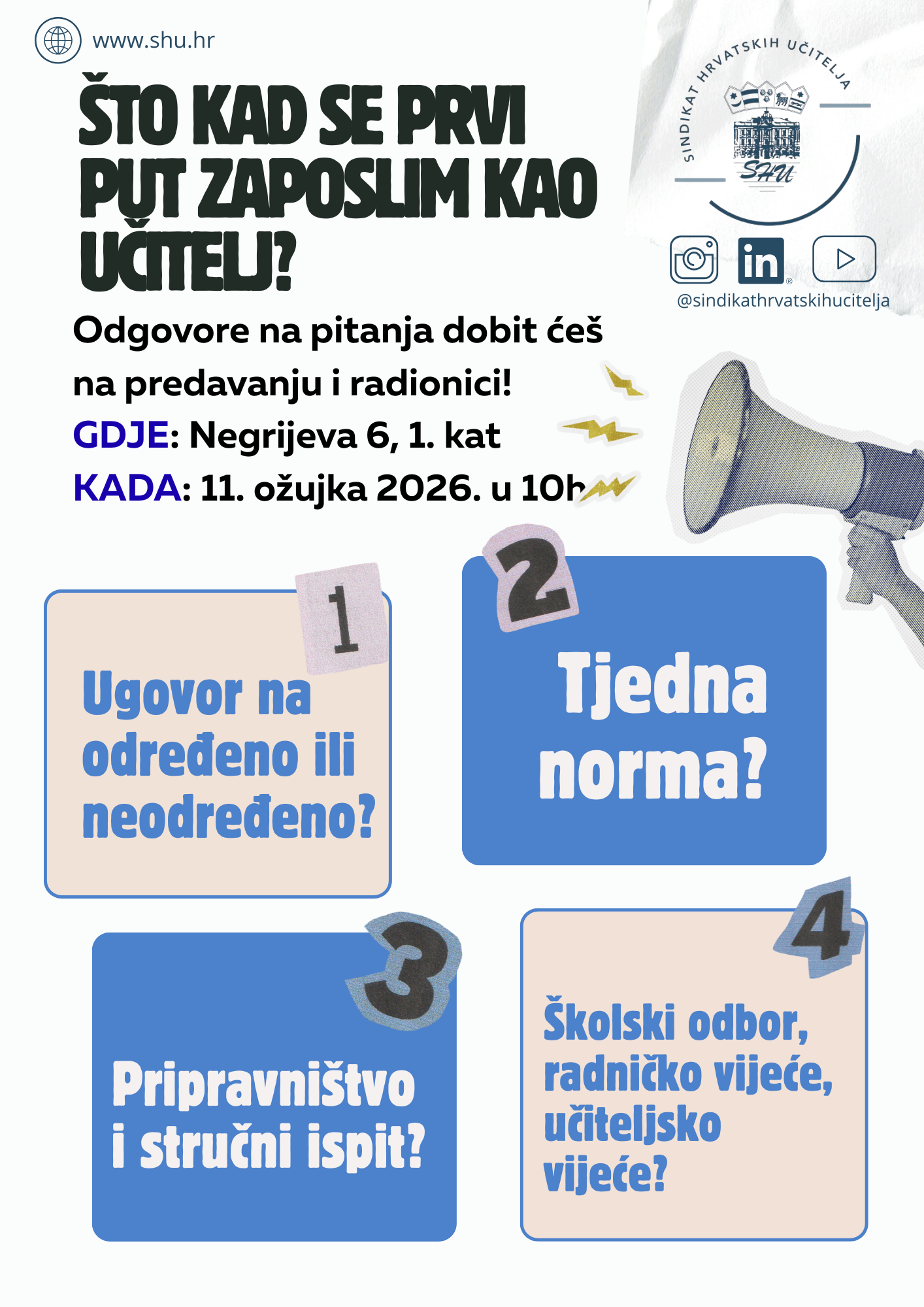 Sindikat hrvatskih učitelja organizira radionicu pod nazivom „Što kad se prvi put zaposlim kao učitelj?“.