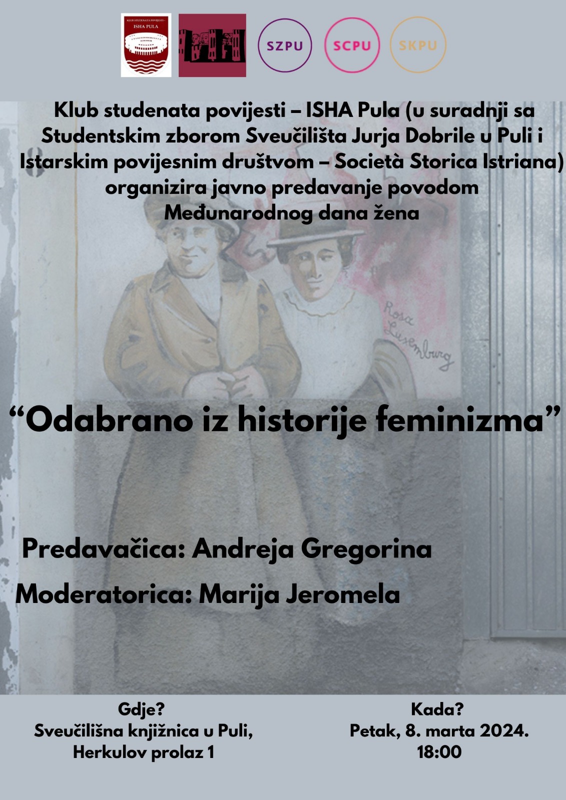 ORGANIZATOR: Klub studenata povijesti – ISHA Pula (u suradnji s: Studentski zbor Sveučilišta Jurja Dobrile u Puli i Istarsko povijesno društvo – Società Storica Istriana)