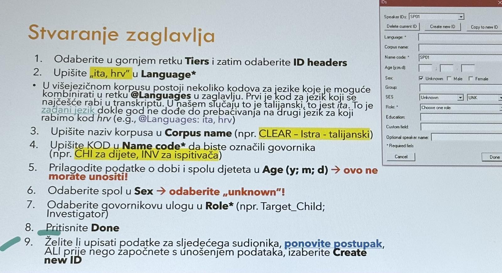 The workshop was intended for researchers and students engaged in the construction and analysis of spoken language corpora, with particular emphasis on participants involved in the project Neurocognitive Abilities and Early Bilingual Development: Language Exposure and Executive Functions – NeuroLEEF (European Union, NextGenerationEU). The participants are actively involved in project activities encompassing the transcription and analysis of linguistic data collected from children in multilingual environments. The audio recordings employed in the workshop were collected at the “Edmondo De Amicis” Primary School in Buje within the international scientific research project Cross-linguistic Influence during Real-time Language Processing in Child Heritage Speakers – CLEAR, funded by the European Commission for Research and Innovation under the Horizon Europe programme, Marie Skłodowska-Curie Actions (MSCA), under the scientific coordination of Dr. Sara Košutar (UiT The Arctic University of Norway), and gathered by professor Arlene Kauzlarić Ocovich.