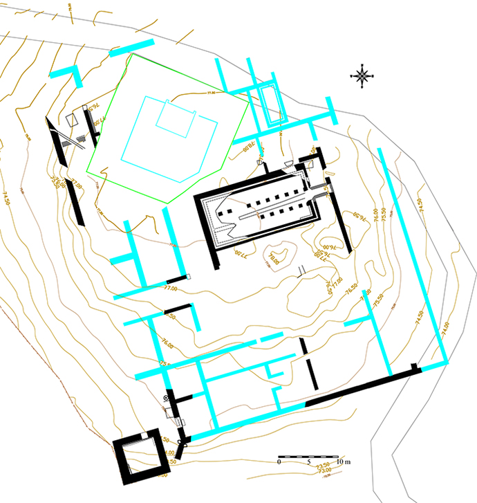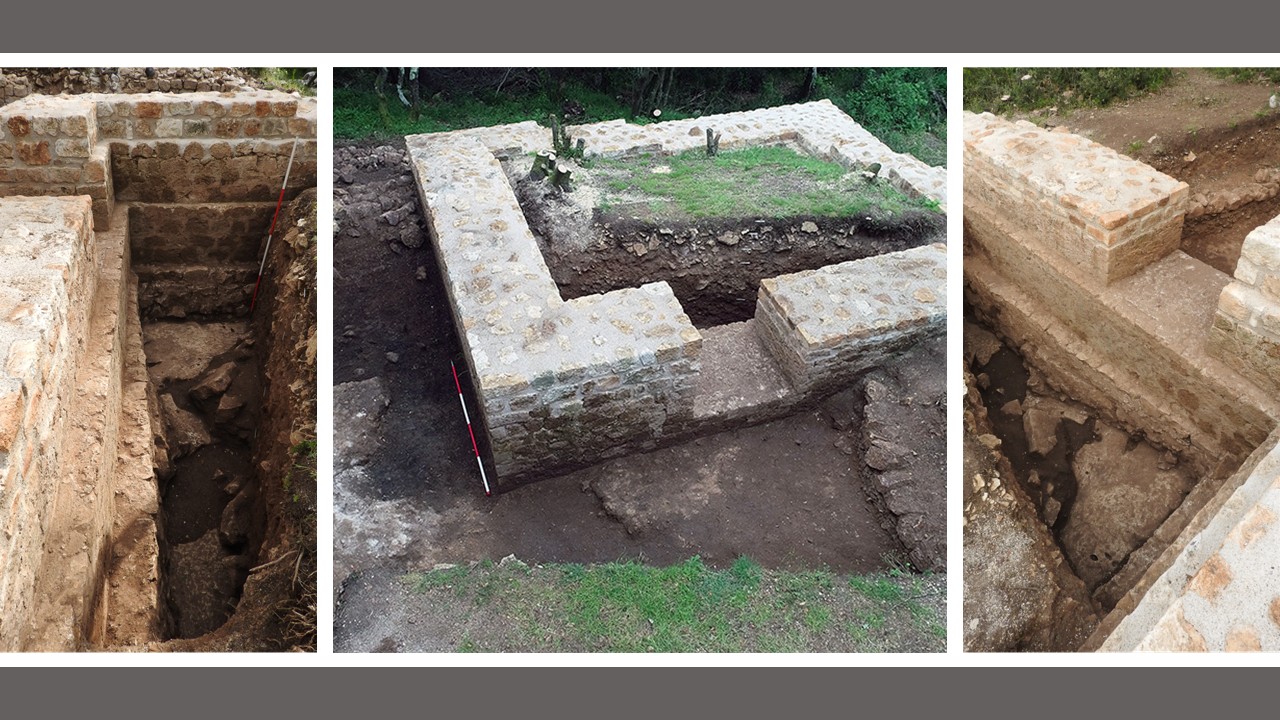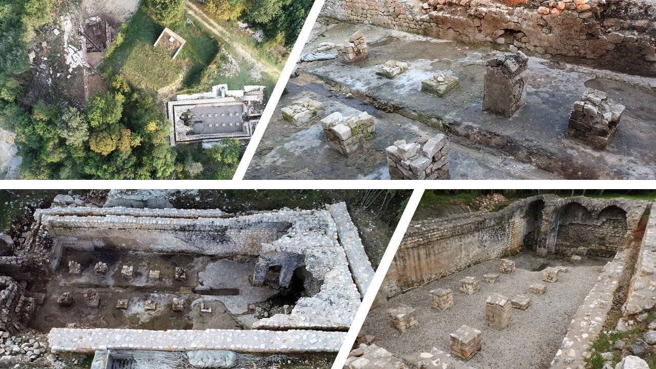 Približnu tlocrtnu dispoziciju rimske građevine moguće je interpretirati temeljem dosadašnjih iskopavanja i geofizičkog snimanja terena. Rimska građevina pravokutna je tlocrta s vjerojatno središnjim četvrtastim dvorištem okruženim sa sve četiri strane nizovima prostorija. Na sjevernoj strani dvorišta ostaci su cisterne koja je s dva niza pilastra bila podijeljene u tri uzdužna nadsvođena broda.
