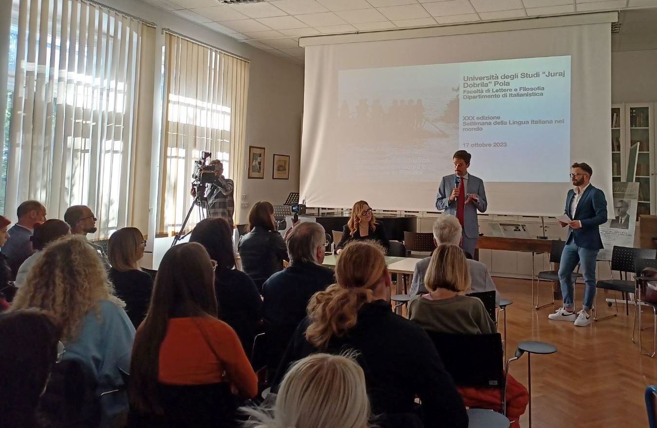 Odsjek za talijanistiku Filozofskog fakulteta u Puli obilježio je 23. izdanje Tjedna talijanskoga jezika u svijetu sa zanimljivim predavanjima koje su profesorice Sergia Adamo i Susanna Sieff održale 17. i 18. listopada 2023. U sklopu manifestacije 20. listopada 2023. održano je proglašenje pobjednika među studentima koji su sudjelovali u video natječaju pod naslovom Il pensiero ecologico di Italo Calvino (Ekološka misao Itala Calvina).