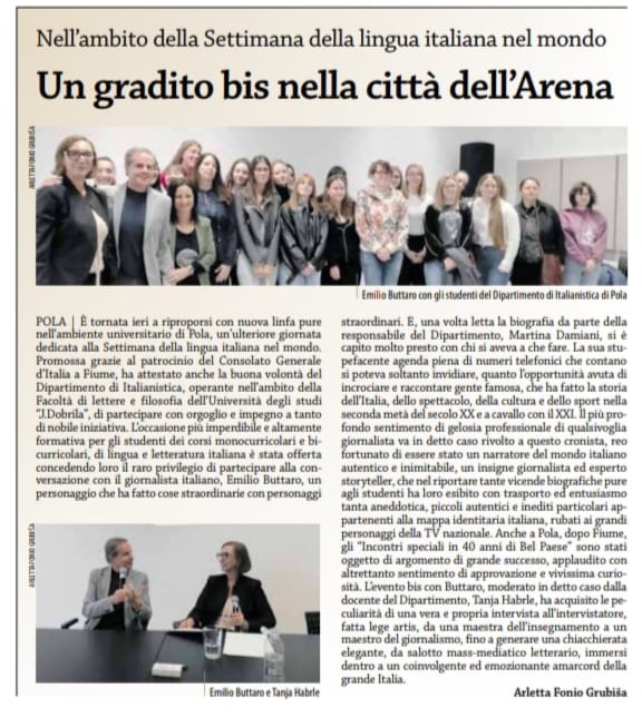 Il Dipartimento di Italianistica della Facoltà di Lettere e Filosofia dell’Università degli Studi Juraj Dobrila di Pola ha celebrato la XXV Settimana della lingua italiana nel mondo con un ricco programma di eventi.