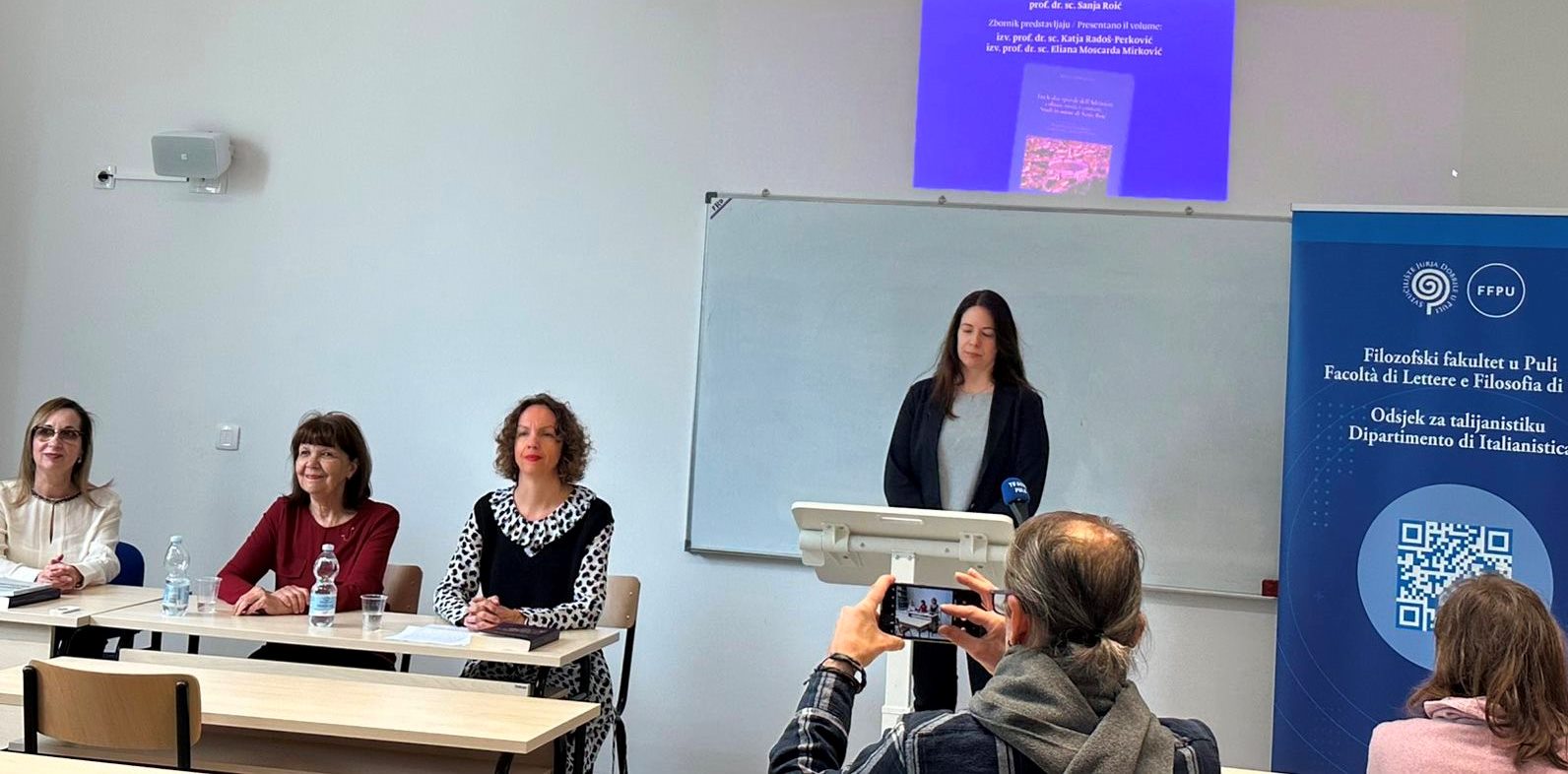 O zborniku i o doprinosu same znanstvenice, profesorice Sanje Roić, govorile su izv. prof. dr. sc. Katja Radoš-Perković s Odsjeka za talijanistiku Filozofskog fakulteta u Zagrebu te izv. prof. dr. sc. Eliana Moscarda Mirković s pulske talijanistike.